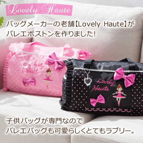 全長62cm→54cm バッグメーカーの老舗【Lovely Haute】がバレエボストンを作りました! 子供バッグが専門なのでバレエバッグも可愛らしくとてもラブリーです。